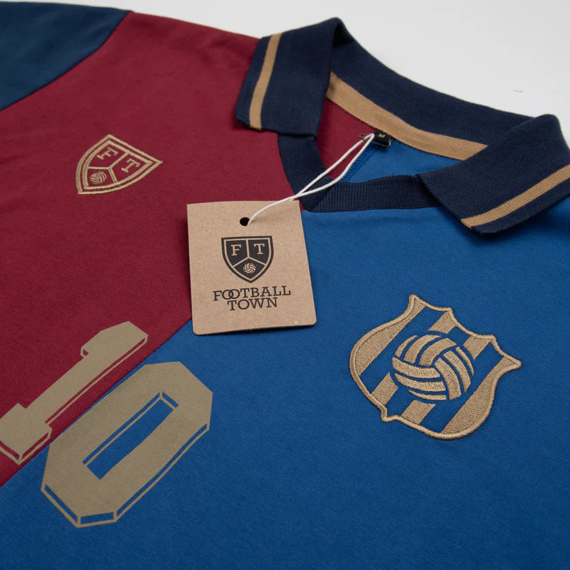 Inspirada en la estética del fútbol clásico europeo, esta camiseta polo azulgrana con corte oversize rinde homenaje a la tradición y el espíritu del juego de antaño.
